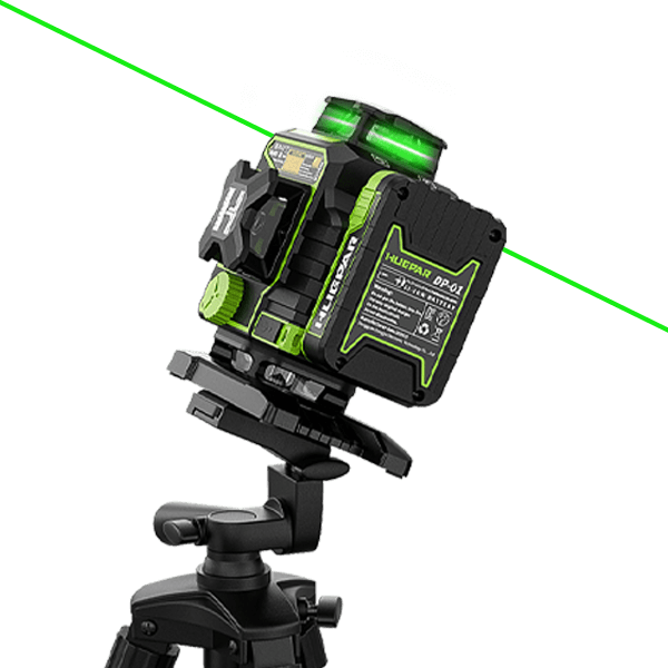 Le niveau laser 4D Huepar W04CG offre une couverture complète avec 16 lignes laser, formant une grille de mesure intégrale pour une précision optimale.